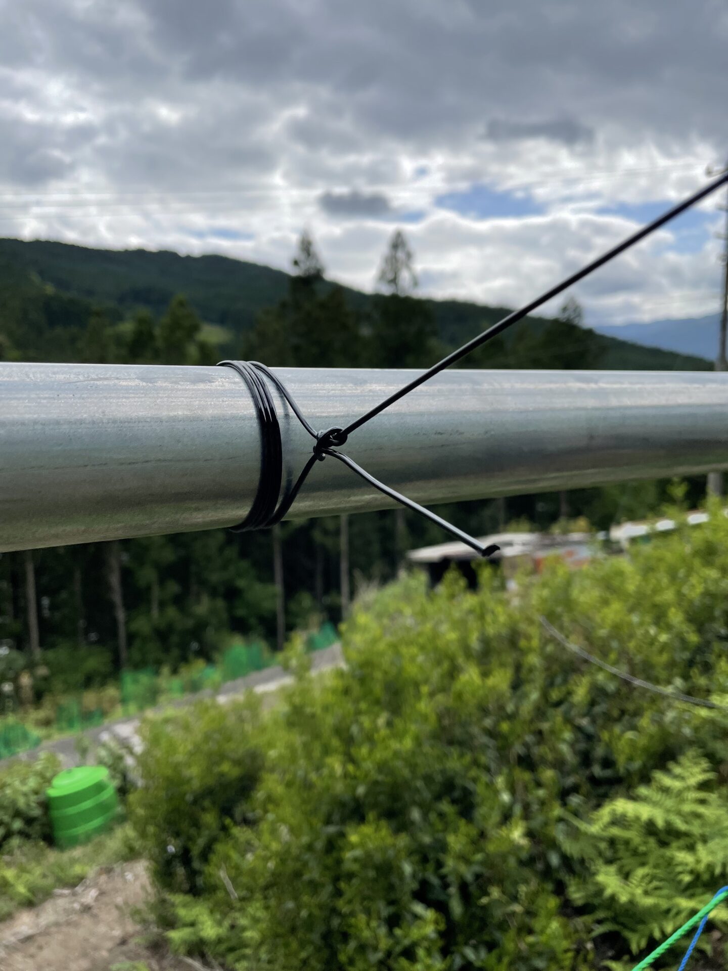 どうでしょうか?これで単管パイプにワイヤーを沿わせることができました。