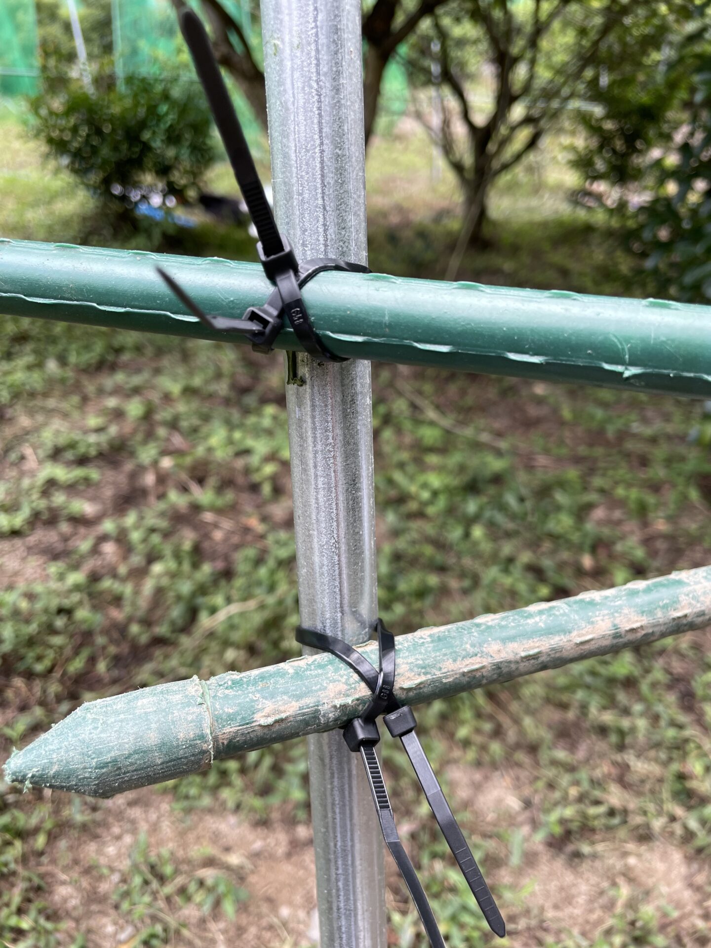 こんな感じでロックタイを使ってパイプに支柱を取り付けていきます。