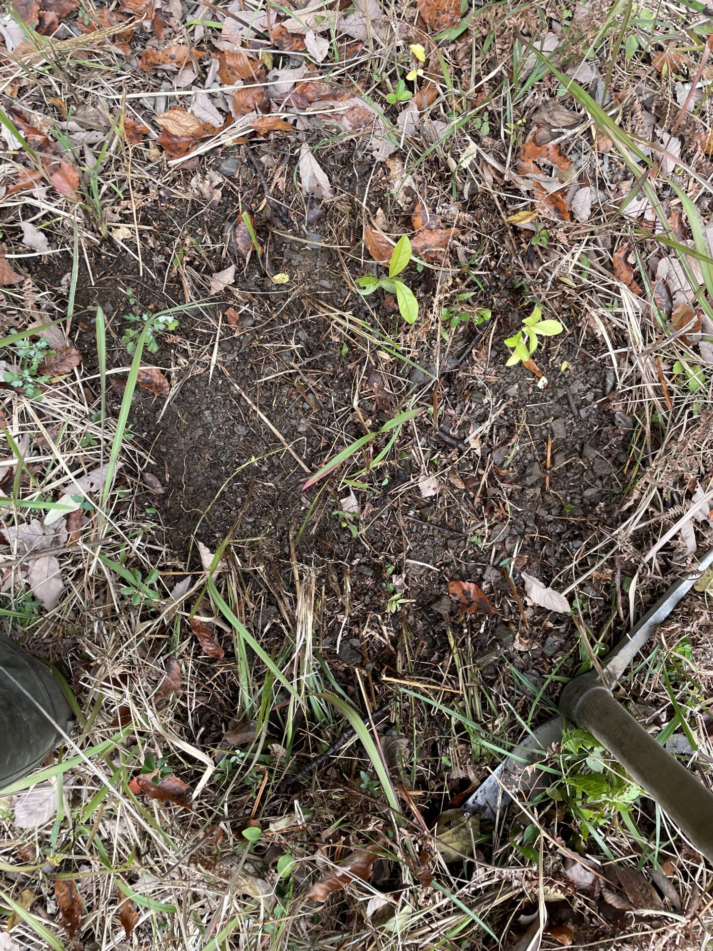 こちらに榊の苗木を植えていくのですが、見ての通り、雑草やら落ち葉やらが散乱している場所です。