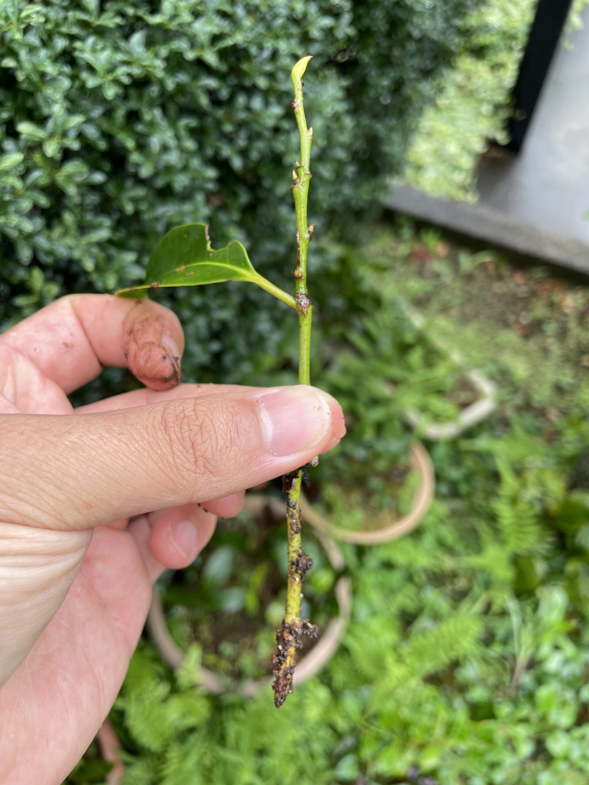 実際日陰で育てた挿し木は根っこが出てくるのが日向で育てた挿し木に比べて遅いですが、
