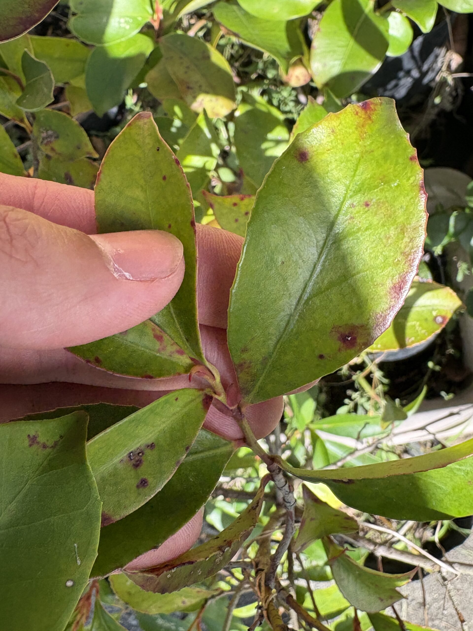 カキの葉が赤くなっていますが、こちらは日光に当たりすぎたためです。本榊でも起こりうることなのでこの赤みは違いにはなりません。
